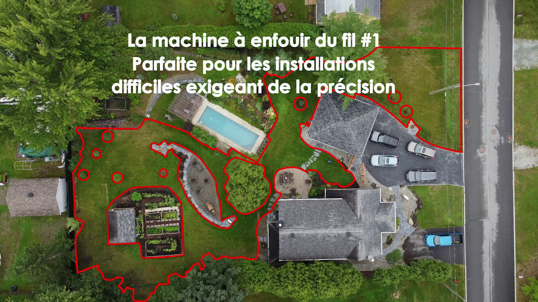 La machine à enfouir du fil 600MH offre la robustesse, la durabilité et la portabilité nécessaires aux professionnels. Elle a d’abord été conçue dans le but d’optimiser le travail des installateurs de tondeuses-robots. En constante évolution, le nouveau kit d'installation optionnel permet maintenant l’installation de fil jusqu’à 10 mm de diamètre. Il est donc possible de l’utiliser aussi pour enfouir les fils de clôtures invisibles, de systèmes d’éclairage extérieur, de motorisation de portails, de visiophones, de caméras de surveillance, de connexions Internet haute vitesse ou de télévision par câble et plus encore!
