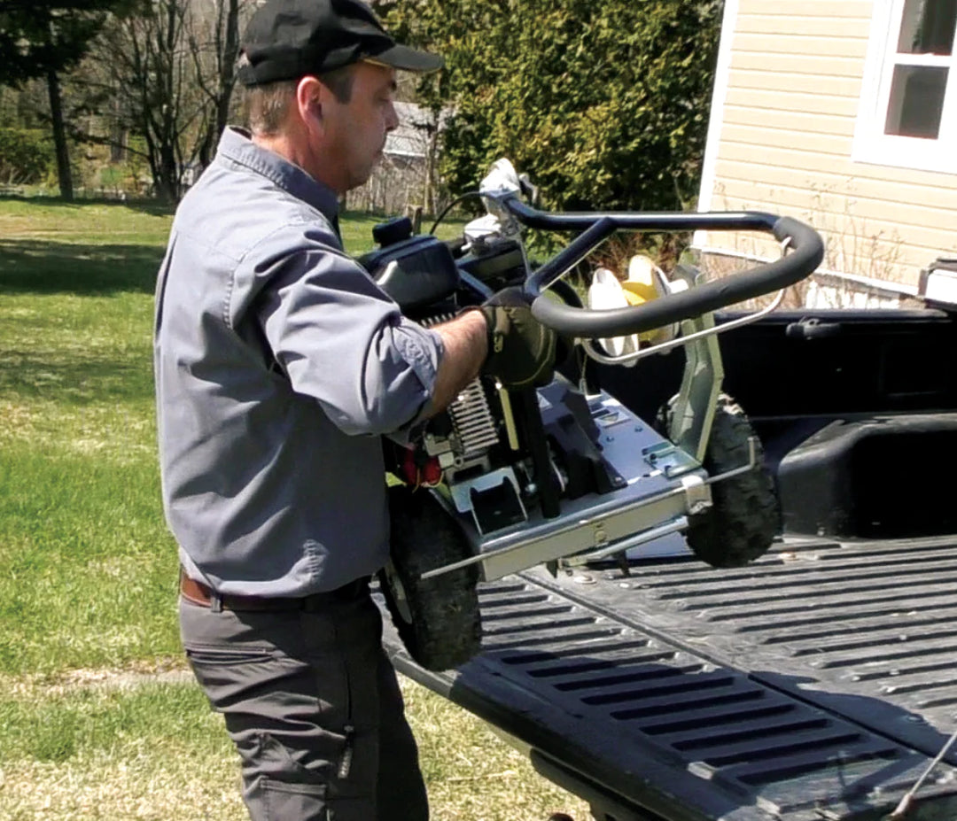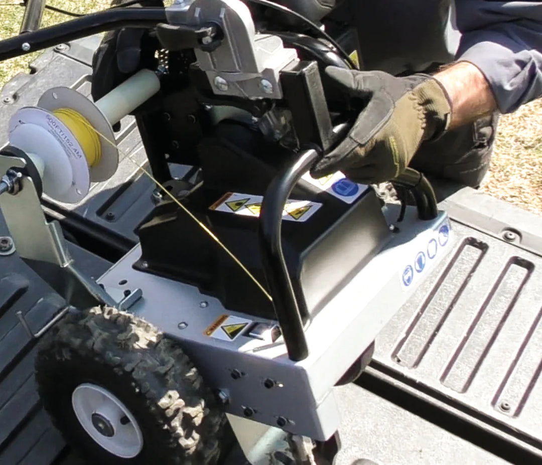 Poignée anti-vibration multipositions | Réduction de plus de 40 % des niveaux de vibration Amélioration du confort de l'opérateur Ergonomique Pivote de 30° vers la droite et s'incline de 180° de l'avant vers l'arrière pour offrir à l'opérateur une position de travail optimale. Facilite l'installation du fil dans les endroits difficiles d'accès tels que sous les haies, les arbustes et les branches basses. |